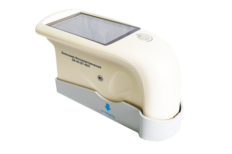 Блескомер БФ-60-В7-60Н фотоэлектрический одноугловой 60°/60° - предназначен для измерений блеска в геометрии освещения/наблюдения 60°/60°. Размер измеряемого участка не более 9x15 мм (эллипс). Встроенное программное обеспечение осуществляет калибровку показаний по установочной (настроечной) мере блеска поверхности (вмонтирована внутрь крышки защитного чехла-держателя). Встроенное ПО осуществляет хранение до 1000 результатов измерений, обеспечивает возможность передачи и работы с данными на внешнем ПК. Результаты измерений, а также заданные режимы работы выводятся на цветной жидкокристаллический дисплей 74x49 мм.