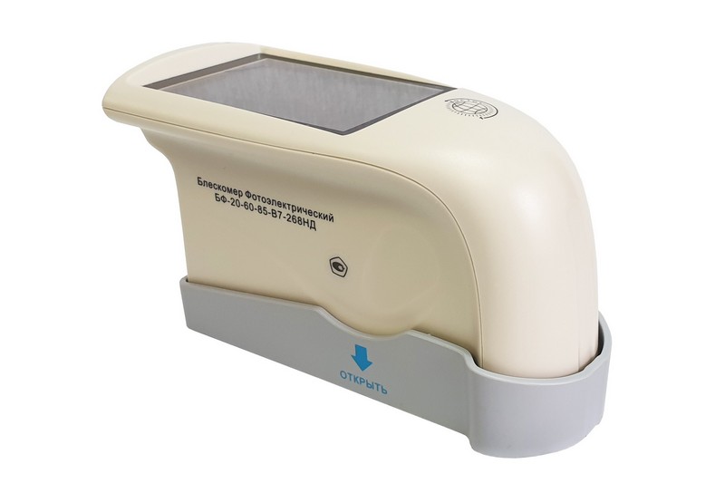 Блескомер БФ-20-60-85-В7-268НД фотоэлектрический трёхугловой 20°/20°, 60°/60°, 85°/85° предназначен для измерений блеска в геометриях освещения/наблюдения 20°/20°, размер измеряемого участка не более 10х10 мм (круг); 60°/60°, размер измеряемого участка не более 9х15 мм (эллипс); 85°/85°, размер измеряемого участка не более 5х36 мм (эллипс). Встроенное программное обеспечение осуществляет калибровку показаний по установочной (настроечной) мере блеска поверхности (вмонтирована внутрь крышки защитного чехла-держателя). Встроенное ПО осуществляет хранение до 5000 результатов измерений, обеспечивает возможность передачи и работы с данными на внешнем ПК. Результаты измерений, а также заданные режимы работы выводятся на цветной сенсорный жидкокристаллический дисплей 74х49 мм.