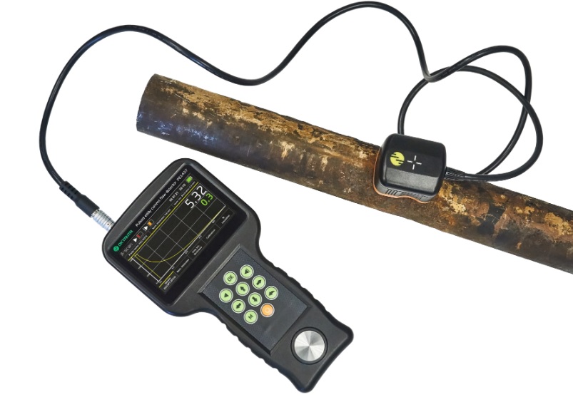 Импульсный вихретоковый дефектоскоп PE1437 измеряет усреднённую толщину металла под датчиком. Пользователю необходимо задать известную толщину объекта контроля в одной точке для калибровки прибора, и после этого прибор будет измерять все остальные точки относительно точки калибровки. Подходит для поиска общей площадной коррозии и крупной язвенной коррозии, расположенной как на внешней поверхности металла, так и на внутренней.